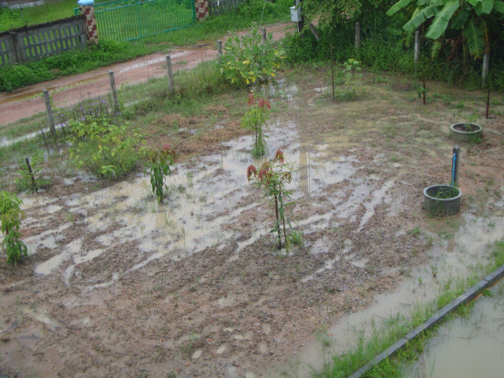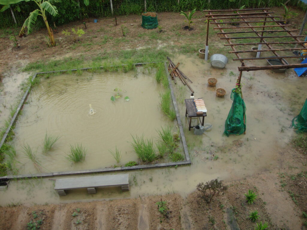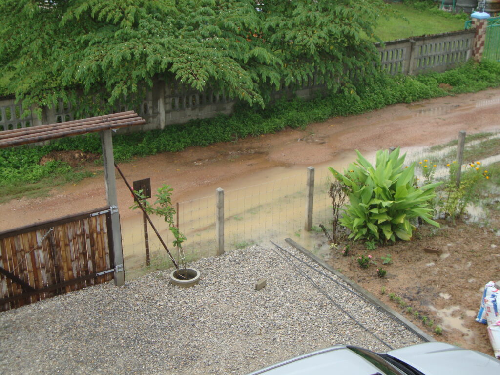 Ja wir sind aktuell in der Regenzeit, aber diesmal ist sie, jedenfalls aktuell, intensiver als letztes Jahr. In den letzten Tagen hat es schätzungsweise um die 250mm geregnet. Das würde dann alleine vom Hausdach her eine Menge von ca. 35m3 Wasser in den Teich spülen. Diese Menge entspricht ungefähr dem gesamten Inhalt unseres Teichs.