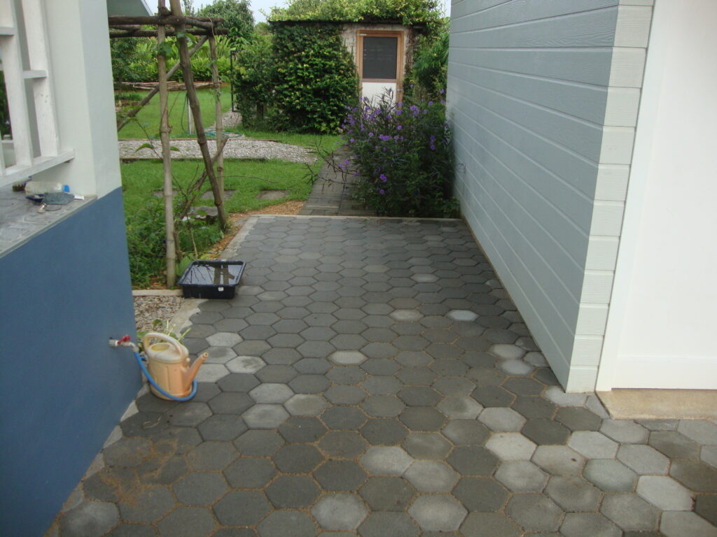 Nachdem wir die Erstellung der Hausmauer und des Eingangstors abgeschlossen hatten blieb noch das Verlegen der Verbundsteine für den Vorplatz auf der Pendenzenliste.